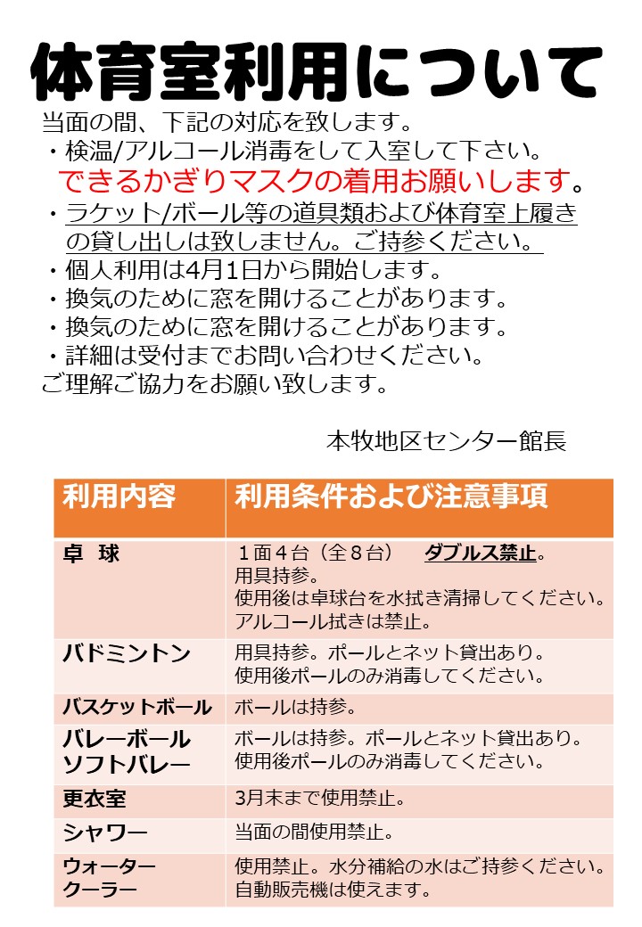 体育室使用に関するお知らせ 3/9版