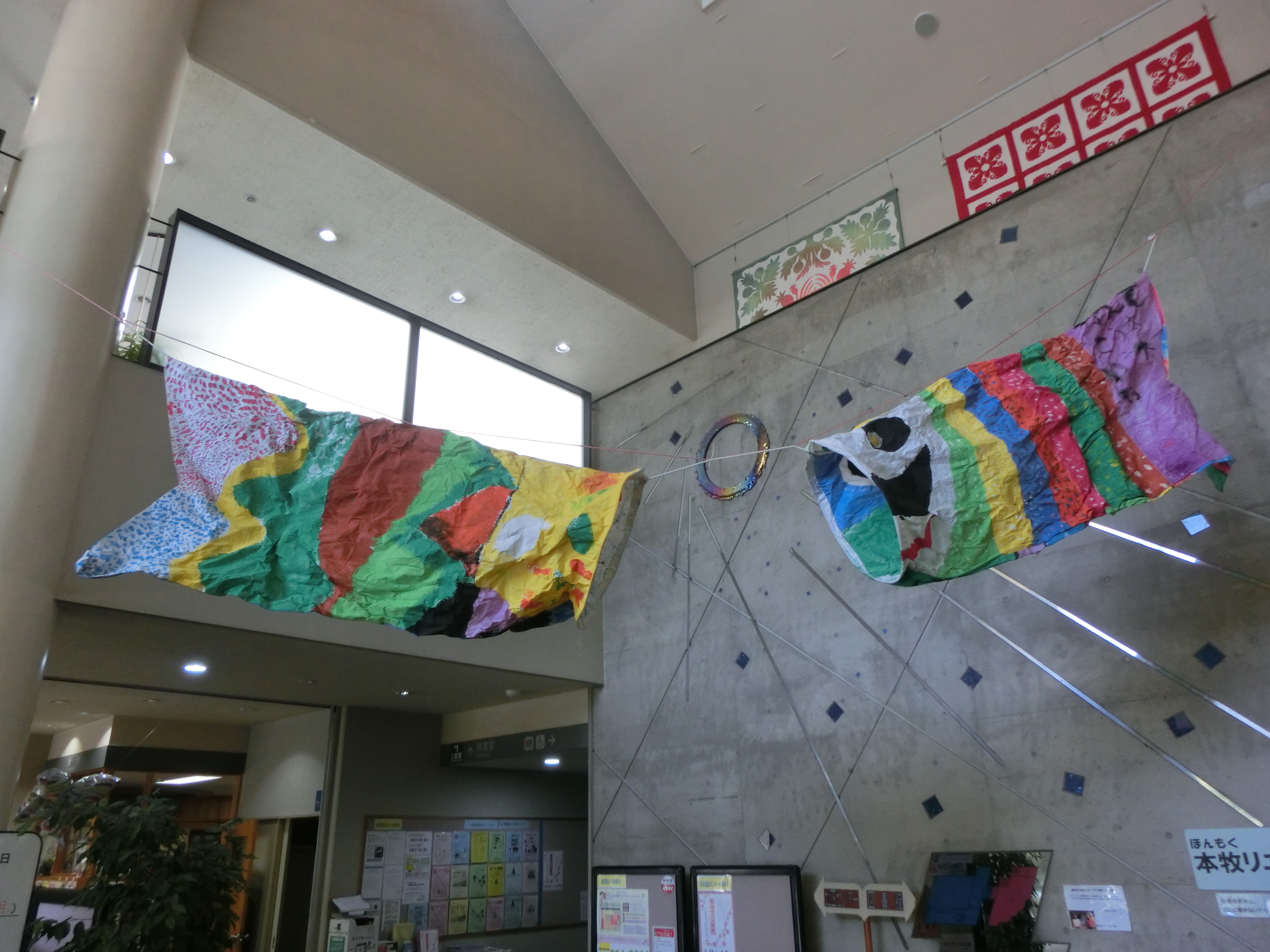 自主事業の生徒さんの手作りこいのぼりです。かわいいけど迫力もあります。
