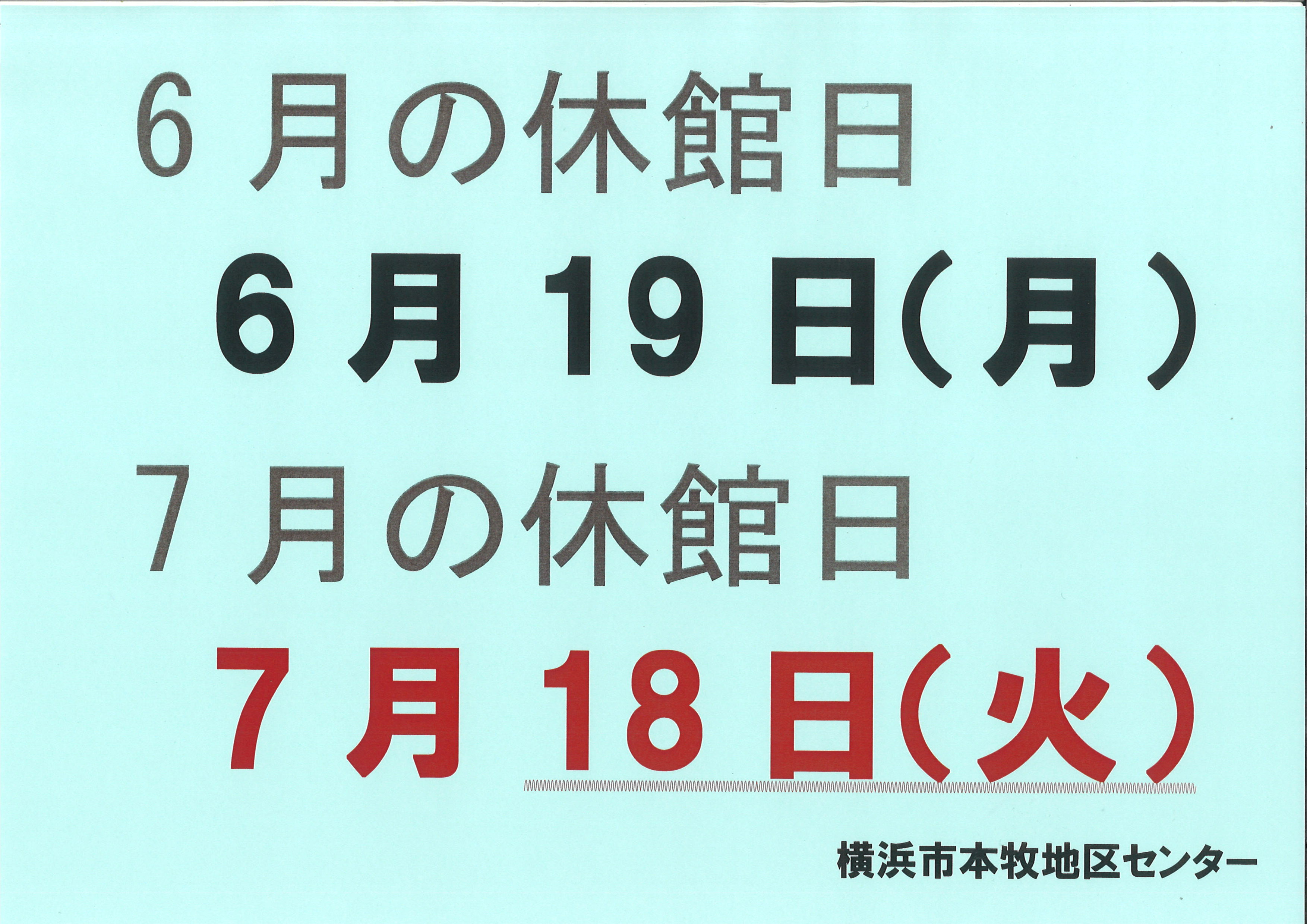 6月.7月の休館日は