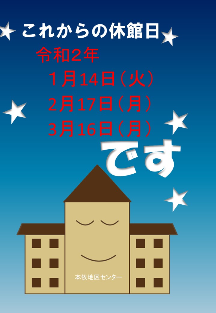 休館日のお知らせです よろしくお願いいたします。