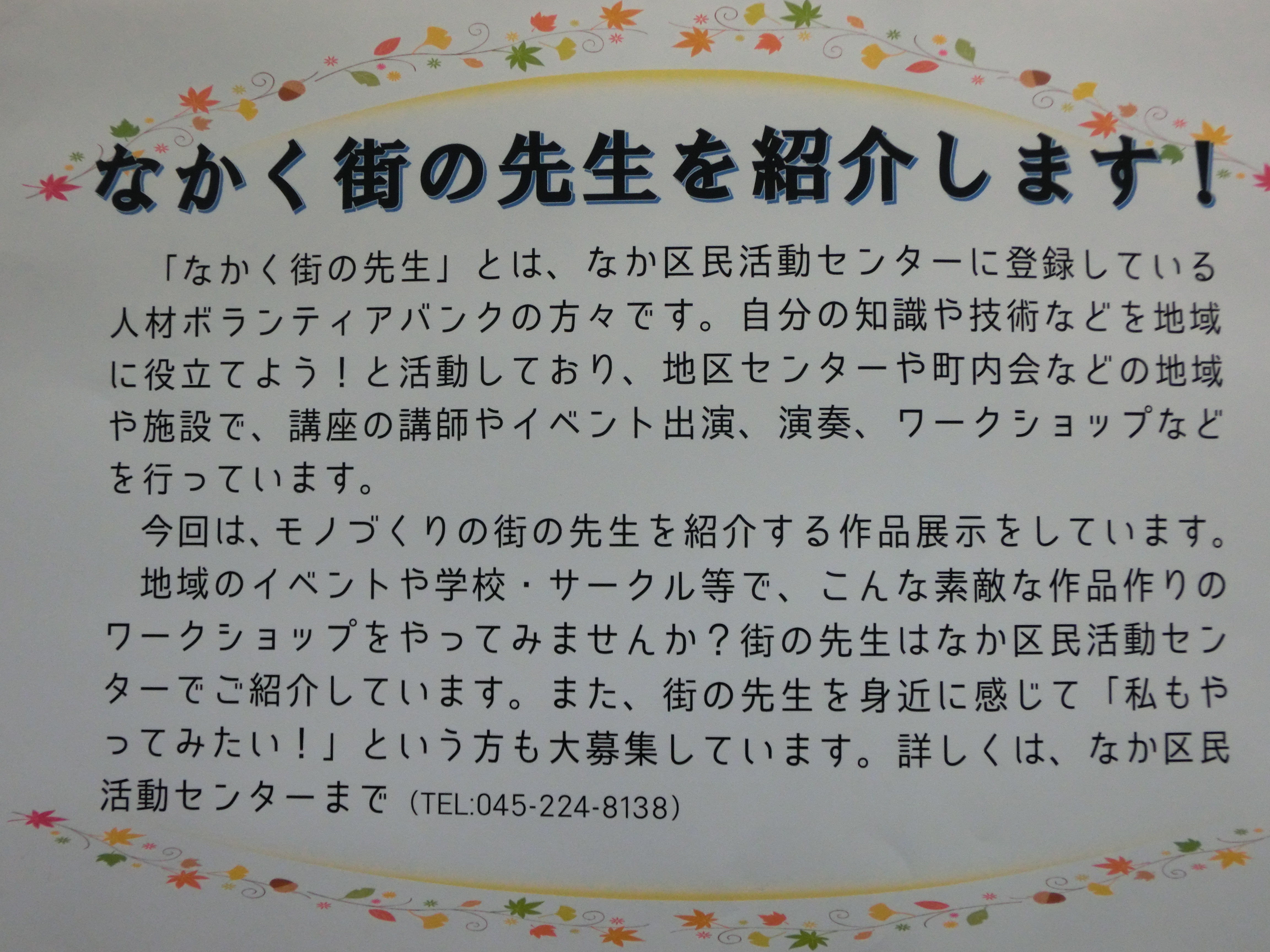 「なかく街の先生」とは、なか区民活動センターに登録している
