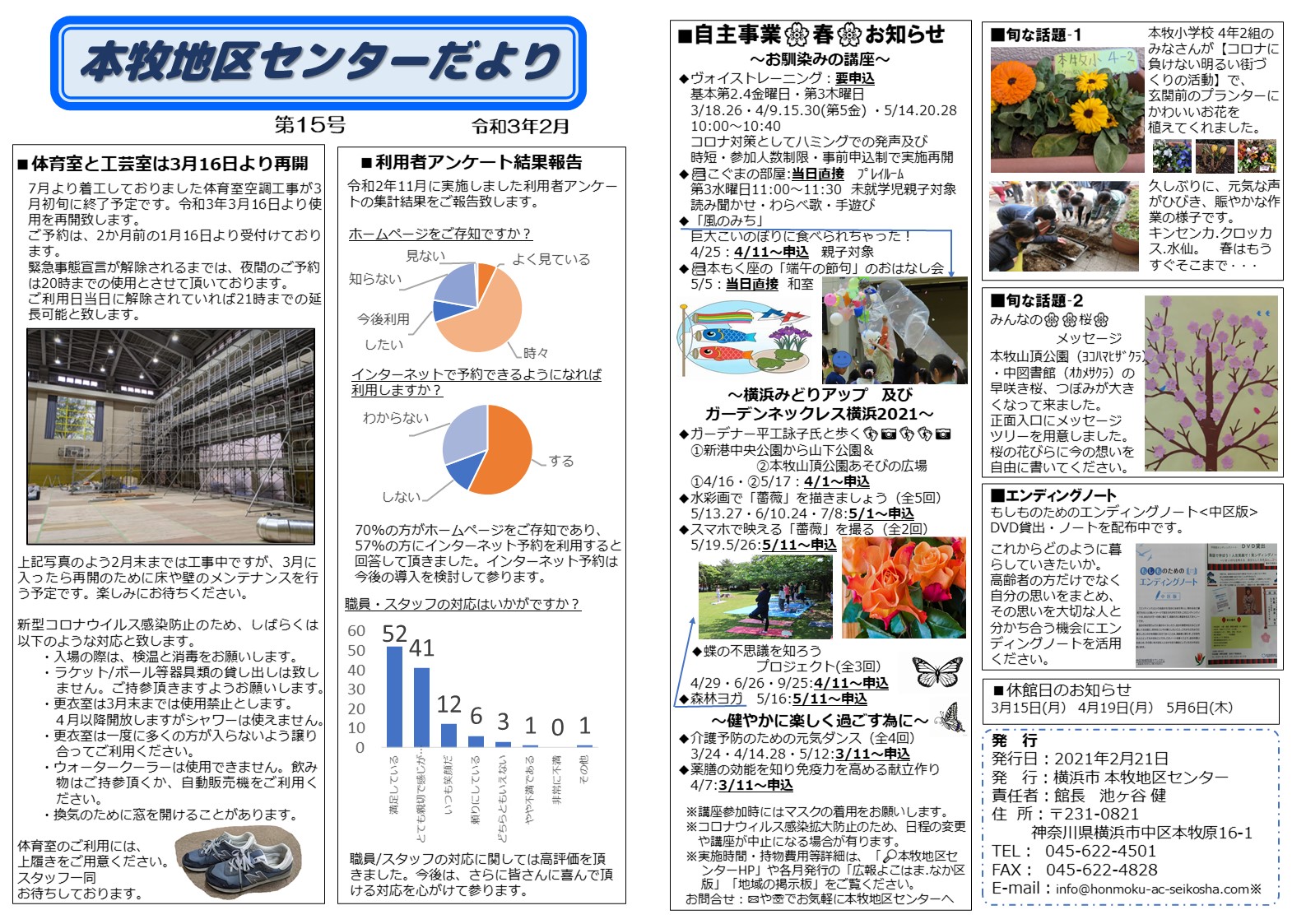 本牧地区センター{地区センターだより」 令和3年 2月号を発行しました。