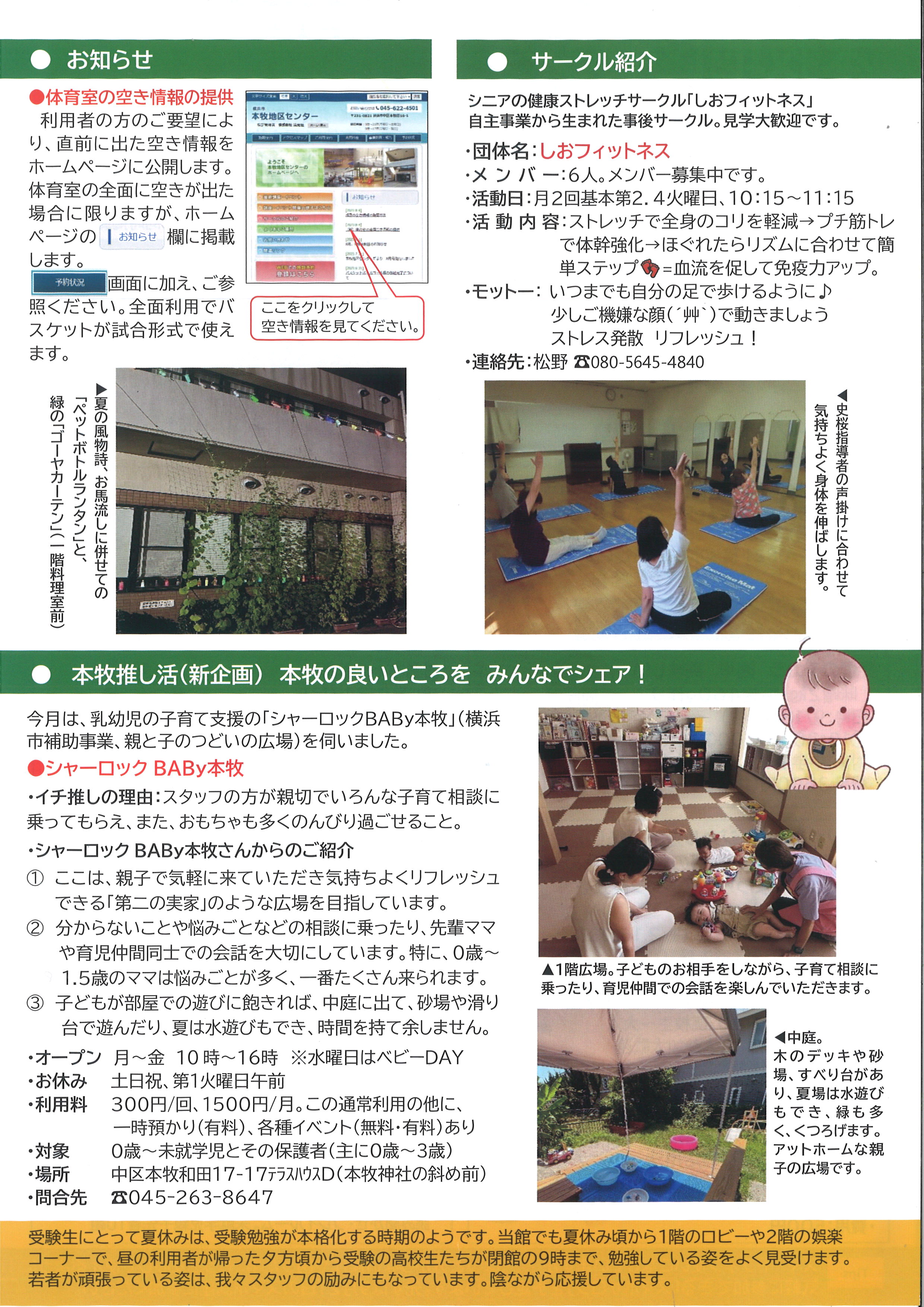 7月より地区センターだよりを月刊化して、9月号は月刊化