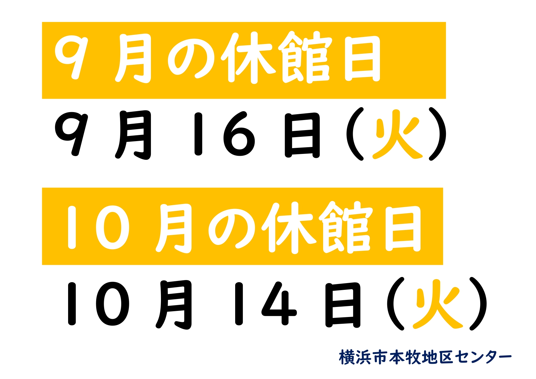 令和7年9月・10月の休館日は、