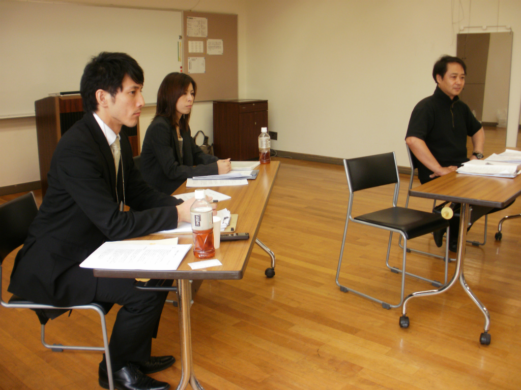俳優さん講師陣ならではの演技力を生かし、多様な場面を想定して実践形式の受付を全職員で体験。