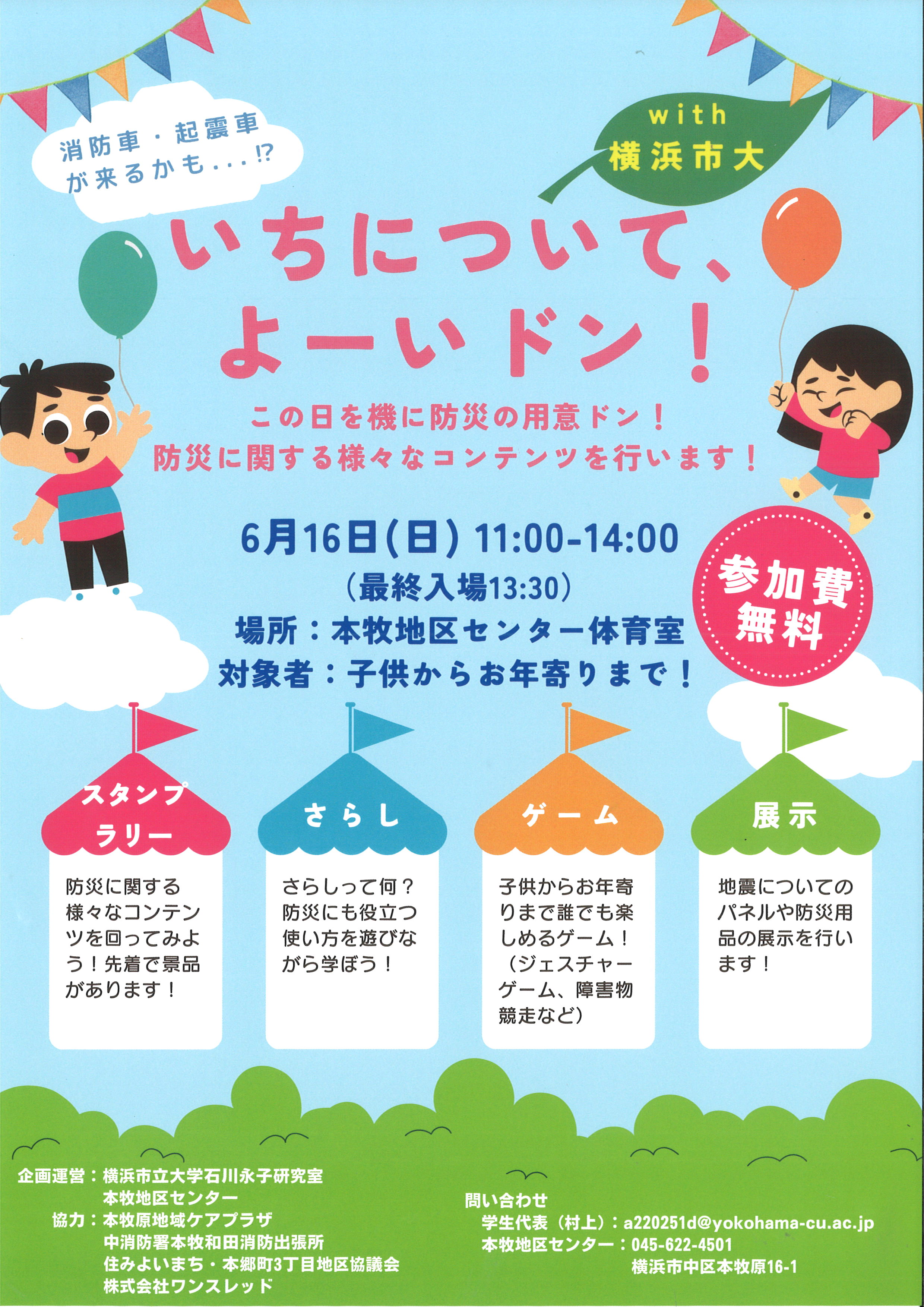 防災イベント いちについて、よーい ドン! 開催について 体育室等利用制限のお知らせ